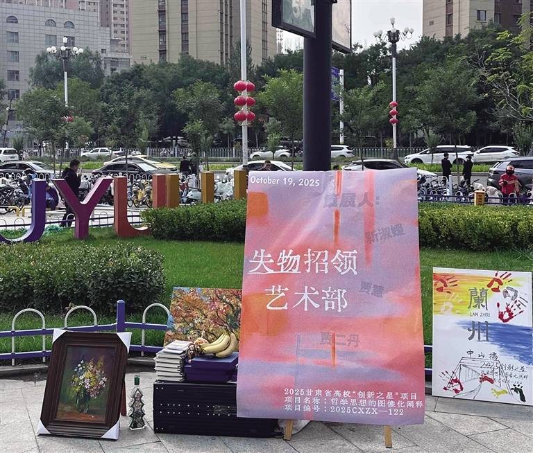 r“我们想问:当艺术不再被框在美术馆、博物馆里,而是突然出现在你去卫生间的路上、你等待就餐的队列里,它还是艺术吗?”今年,三位女生参加了甘肃省高校“创新之星”项目,这场小型展览也是她们项目研究的一部分。项目主持人靳淑媛说,“‘城市寻宝’,是我们对‘哲学思想图像化’的一次实践。我们把‘高冷’的哲学命题,变成一场可参与、可触摸的游戏。”